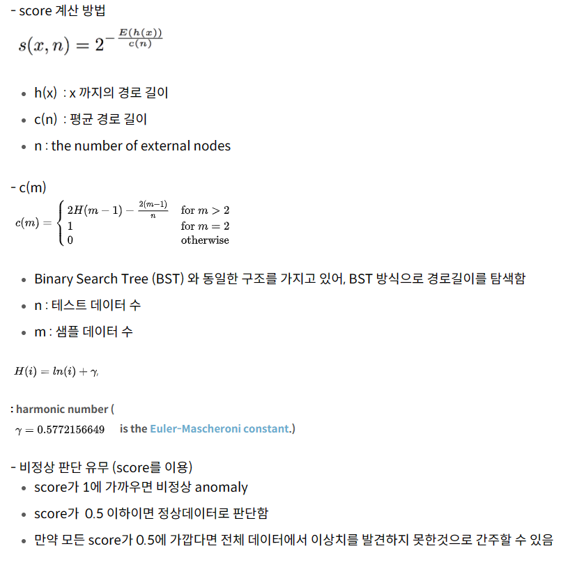 - 군집기반 이상탐지 알고리즘에 비해 계산량이 매우 적다